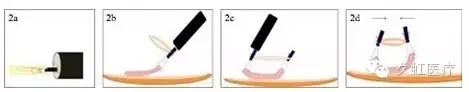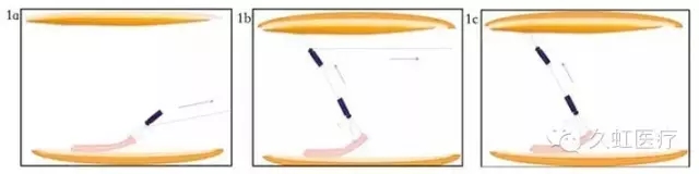 圖 1 金屬夾絲線聯(lián)合牽引技術(shù)的不同變體(1a. 直接絲線牽引法;1b. 利用「滑輪組」效應(yīng)的絲線牽引法;1c. 對(duì)側(cè)絲線牽引法)
