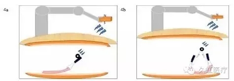 圖 4 磁力錨牽引技術(shù)的不同變體(4a. 使用單錨點(diǎn)磁力錨牽引技術(shù)的流程圖;4b. 使用雙錨點(diǎn)磁力錨牽引技術(shù)的流程圖,因形成三角形平面,磁鐵處于頂點(diǎn),故遠(yuǎn)離剝離面,能提供更廣闊視野)