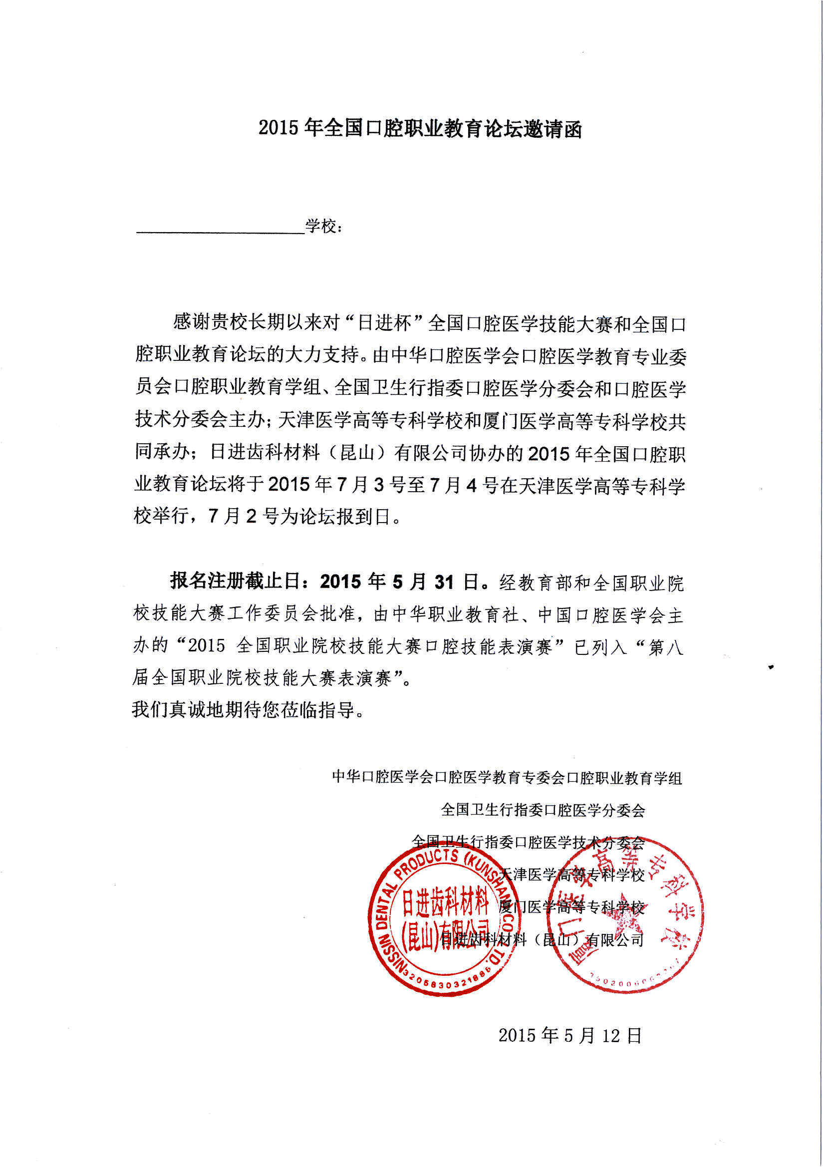 2015年全國口腔職業(yè)教育論壇邀請函