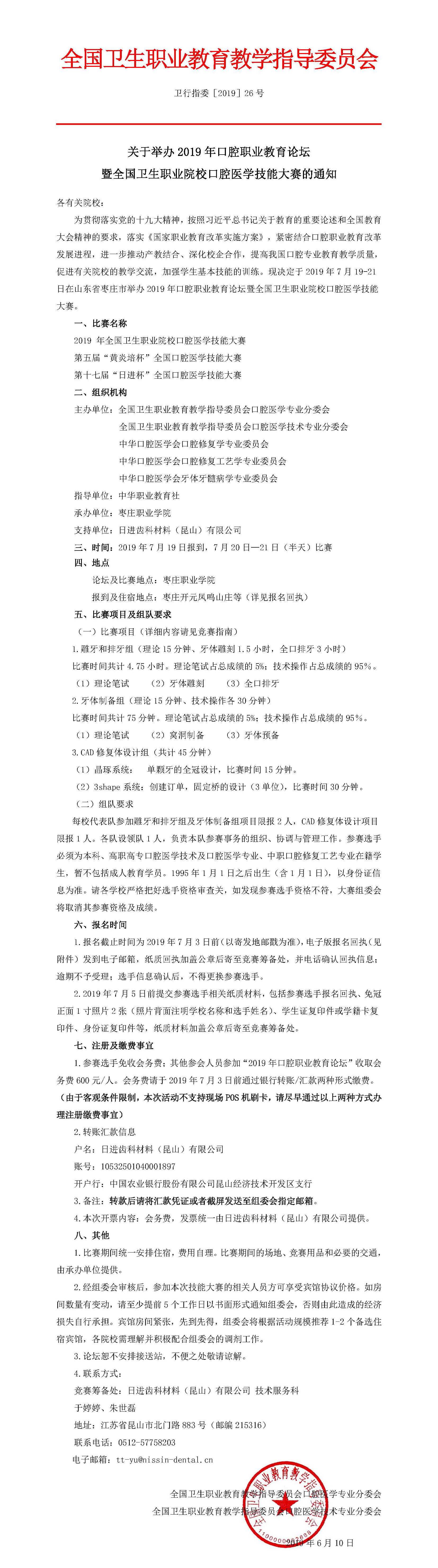 關(guān)于舉辦2019年口腔職業(yè)教育論壇暨全國衛(wèi)生職業(yè)院??谇会t(yī)學(xué)技能大賽的通知