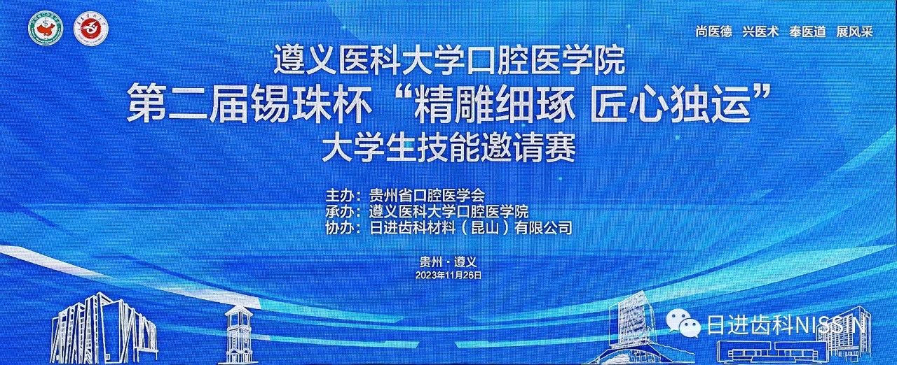 2023年11月26日,由貴州省口腔醫(yī)學會主辦,遵義醫(yī)科大學口腔醫(yī)學院承辦、日進齒科材料(昆山)有限公司協(xié)辦的第二屆錫珠杯“精雕細琢 匠心獨運”大學生技能邀請賽在遵義成功舉行。