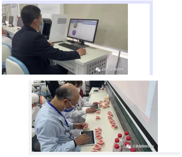 在第三考站口腔基本操作技能考核環(huán)節(jié),考核內(nèi)容為:左上頜第一恒磨牙近中鄰牙合面II類窩洞預(yù)備、右上頜中切牙烤瓷熔附金屬全冠牙體預(yù)備。日進(jìn)齒科材料(昆山)有限公司提供了口腔臨床模擬實(shí)習(xí)系統(tǒng)的技術(shù)保障以及模型等用品的全方位支持。其中,牙體預(yù)備和窩洞預(yù)備的作品通過口腔數(shù)字化結(jié)果評(píng)價(jià)系統(tǒng)的精確評(píng)估,結(jié)合評(píng)委的主觀評(píng)價(jià),保證了比賽結(jié)果的客觀公平和公正。