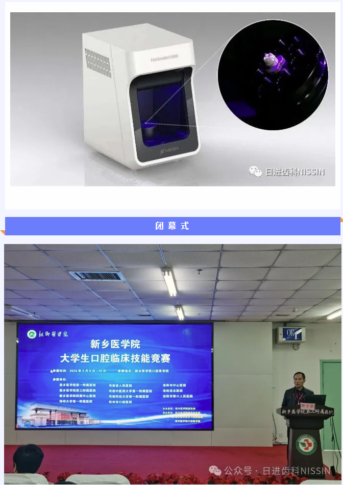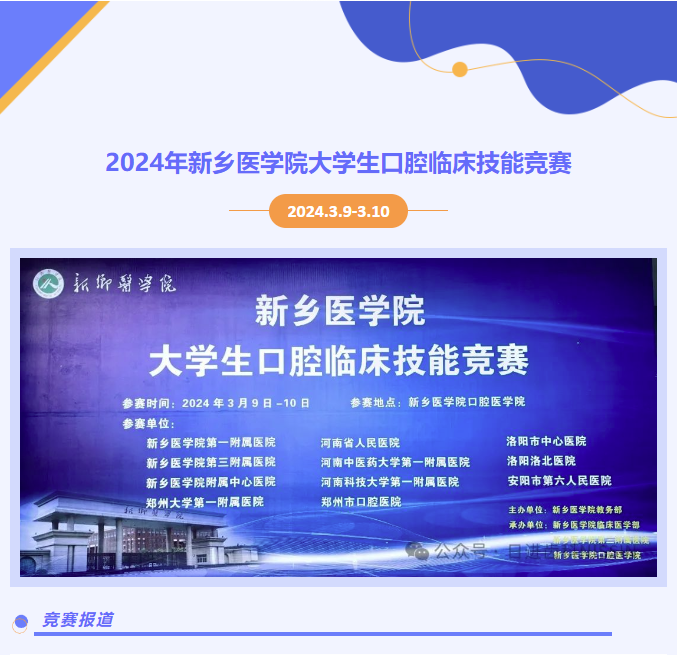 由新鄉(xiāng)醫(yī)學(xué)院教務(wù)部主辦,臨床醫(yī)學(xué)部、第三附屬醫(yī)院、口腔醫(yī)學(xué)院承辦,日進(jìn)齒科材料(昆山)有限公司協(xié)辦的“新鄉(xiāng)醫(yī)學(xué)院大學(xué)生口腔臨床技能競(jìng)賽”于2024.3.9-3.10日在口腔醫(yī)學(xué)樓如期舉辦,本次競(jìng)賽共有11家醫(yī)院的36名選手參加決賽。