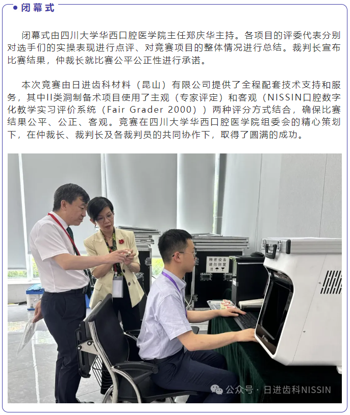 由中國信息協(xié)會主辦,四川大學華西口腔醫(yī)學院承辦,日進齒科材料(昆山)有限公司協(xié)辦的2024年全國大學生創(chuàng)新發(fā)明大賽口腔醫(yī)學臨床技能挑戰(zhàn)賽(西南區(qū)域賽)于2024年7月12日在四川圓滿落下帷幕。